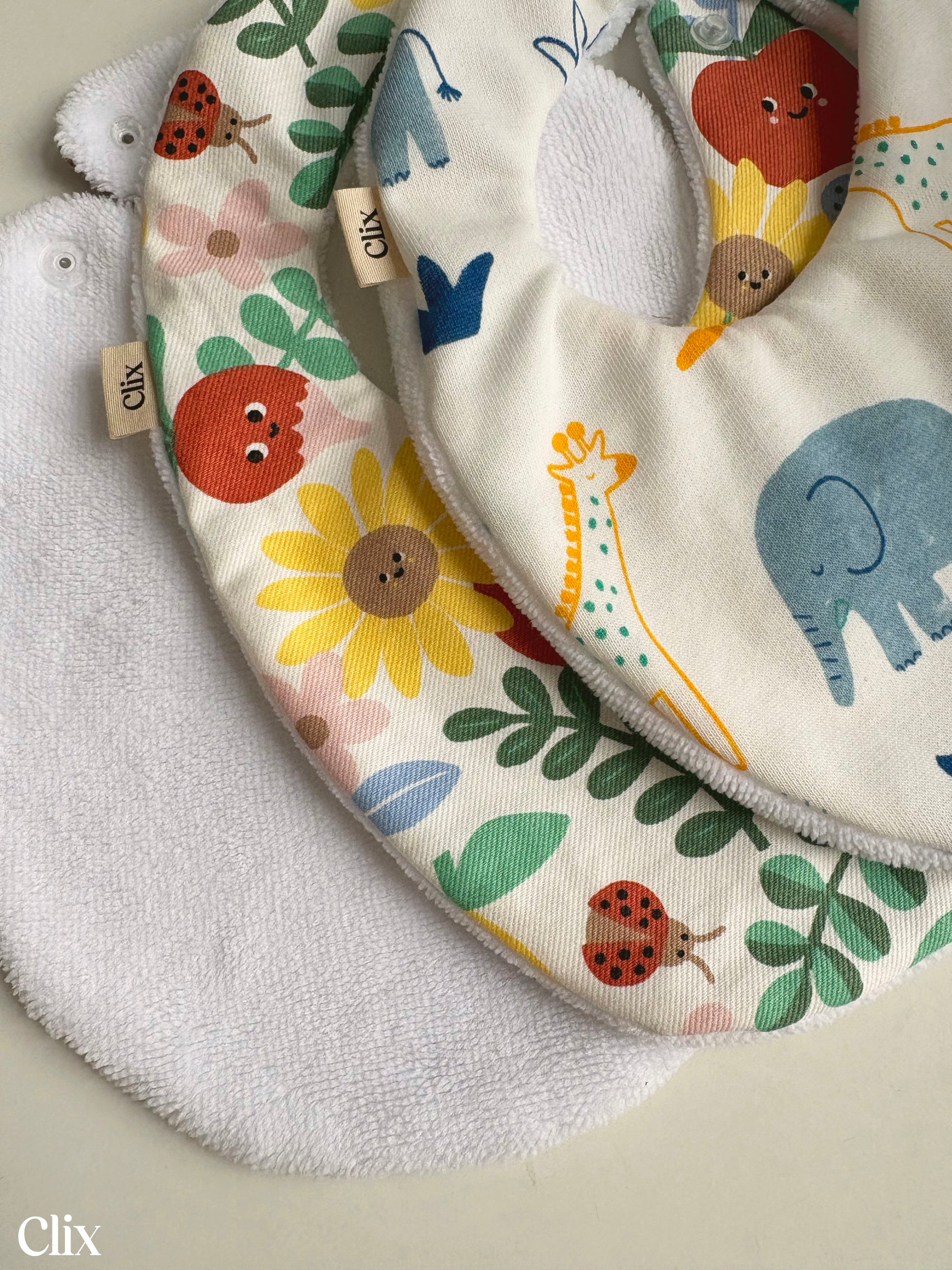 Bavoir bébé réalisé avec un tissu à motif et un tissu éponge éco-bambou bio