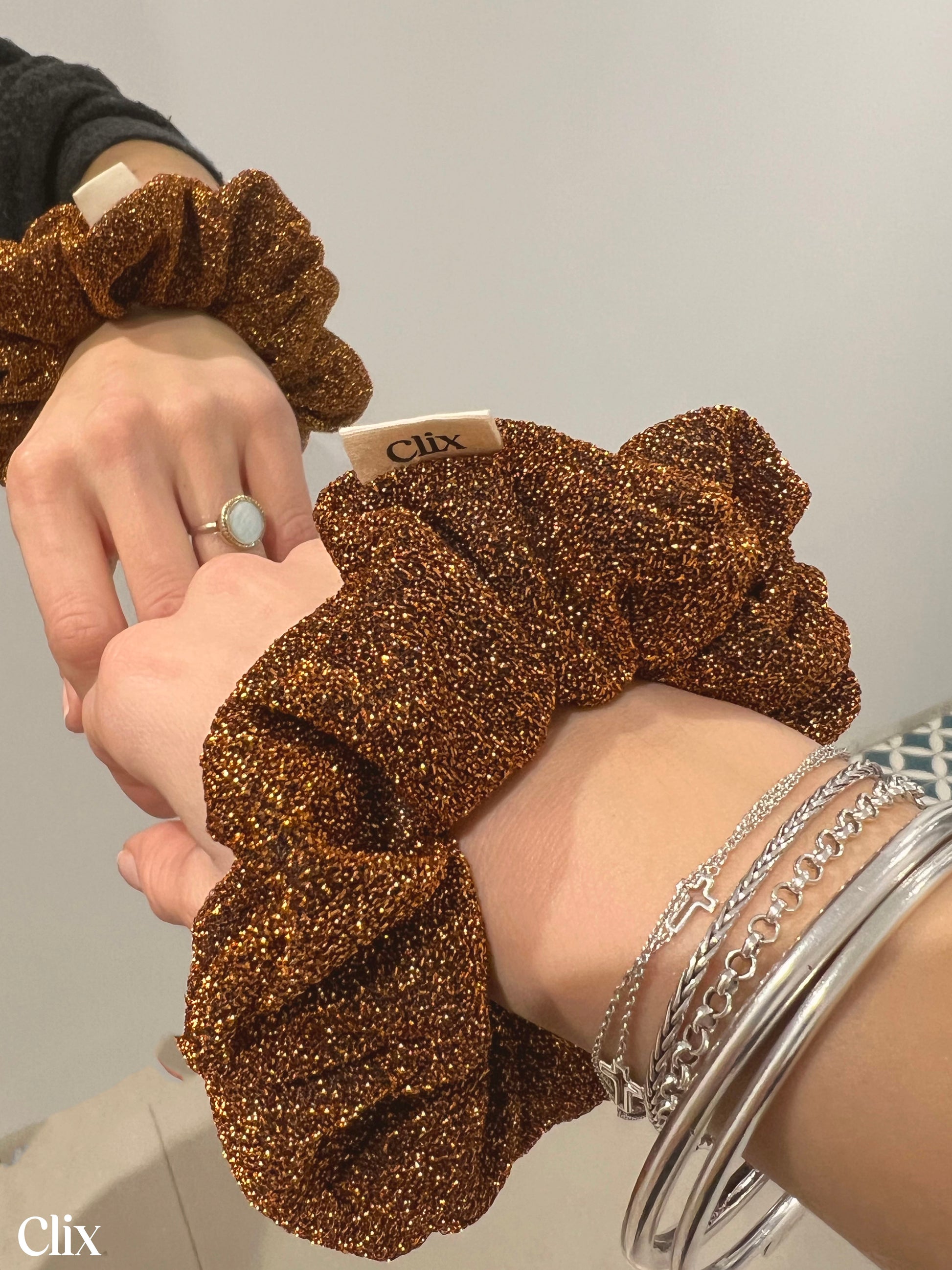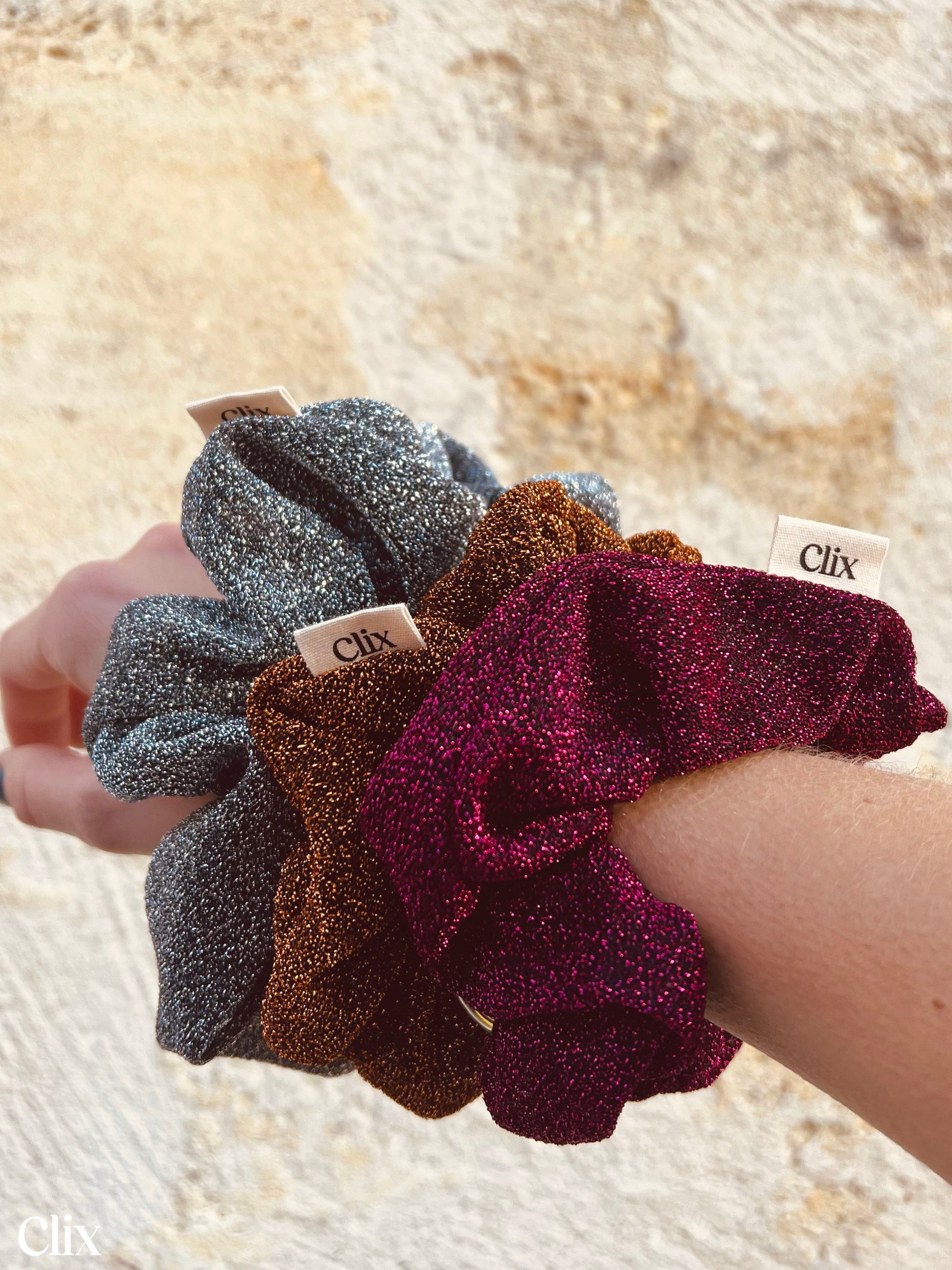 Le chouchou est proposé en 3 coloris, l’argenté, le rose et le cuivré !