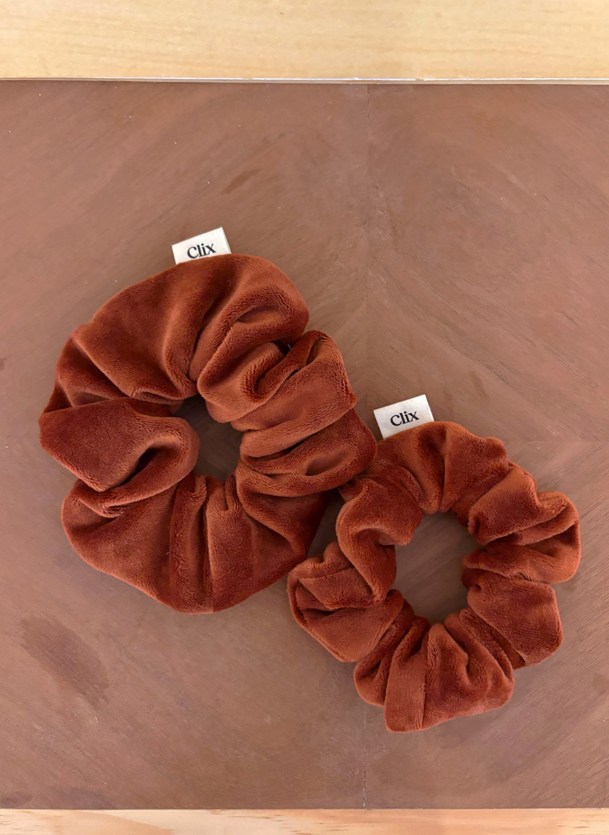 Chouchou fait main avec amour avec un joli tissu velours terracotta.