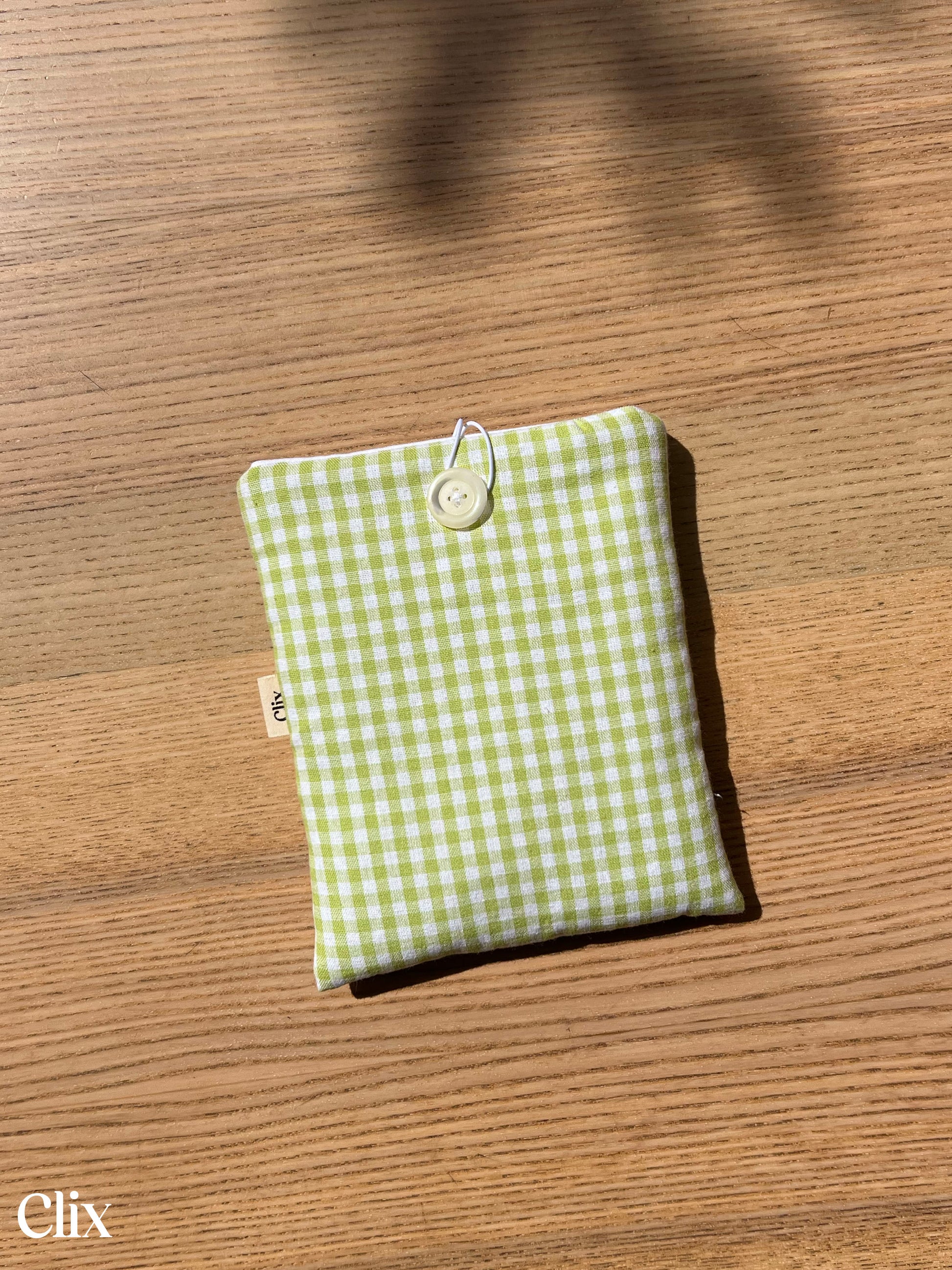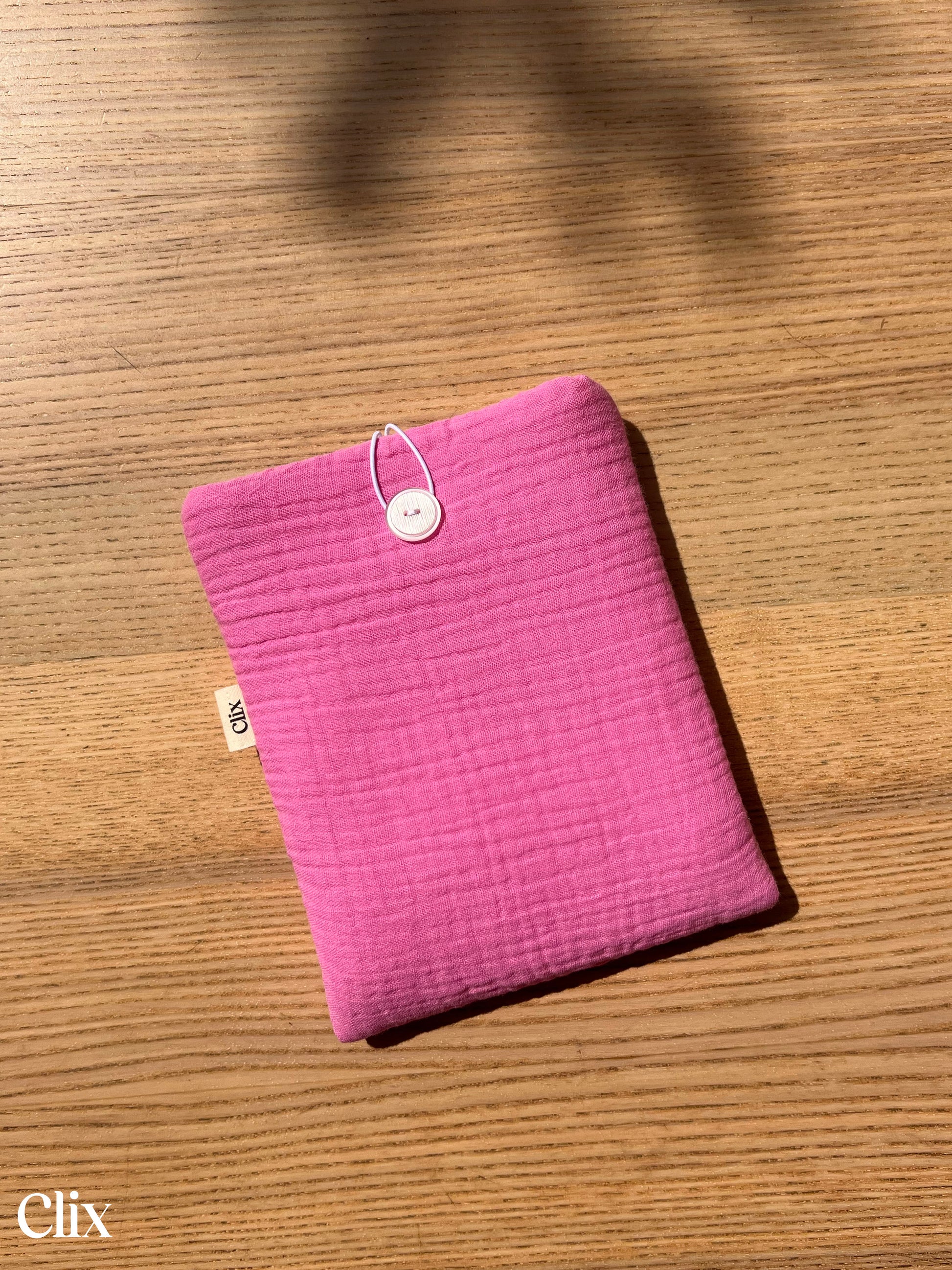 Les housses sont molletonnées et refermées grâce à un élastique adapté, un joli bouton et un étiquette Clix en drapeau sur le côté.