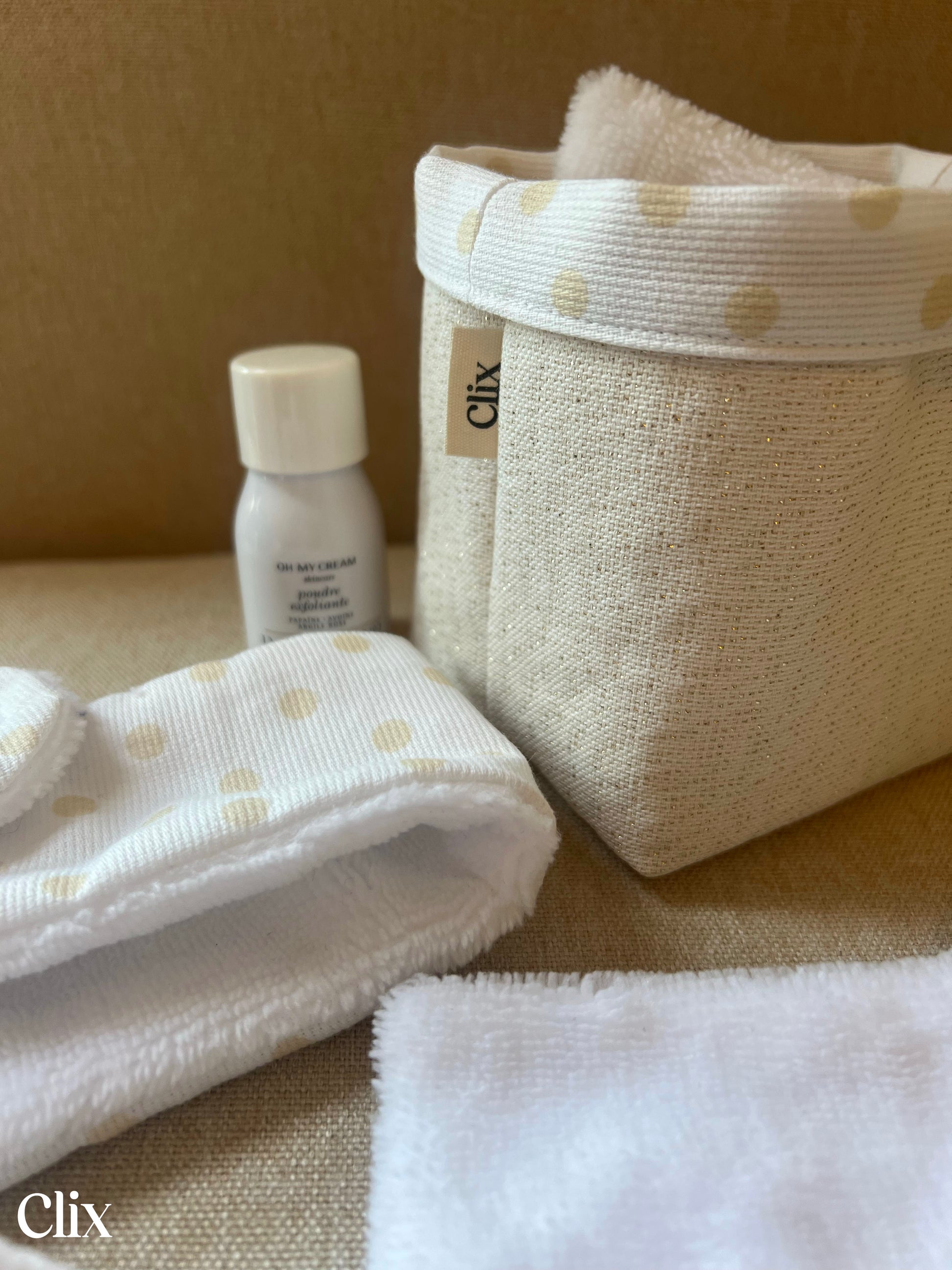 - 1 pochon réversible pour stocker votre nécessaire skin care (5,90€)